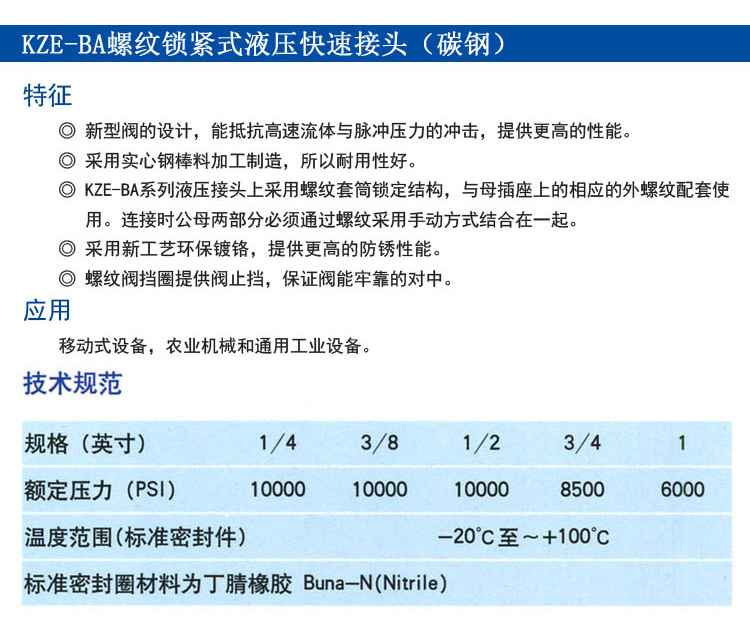 KZE-BA螺紋鎖緊式液壓快速接頭(碳鋼)