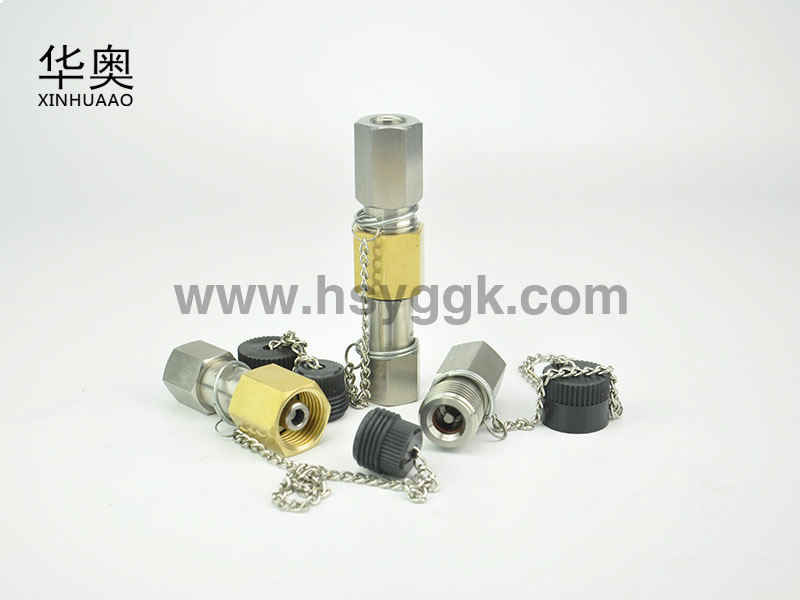 特征:黃銅外套鎖緊,螺紋鎖緊式有助于防止因震動(dòng)而松脫。小直徑配合密封有助于分離力保持在最小值,從而使接頭在壓力達(dá)35MPa的情況下可;連接或斷開(kāi)。該產(chǎn)品廣泛應(yīng)用于石油行業(yè),便攜式液壓千斤頂。
